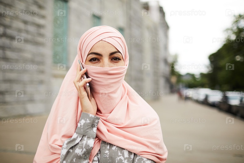 Современная религиозная женщина, разговаривающая по телефону