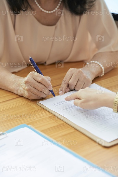 Деловая женщина, подписывающая контракт