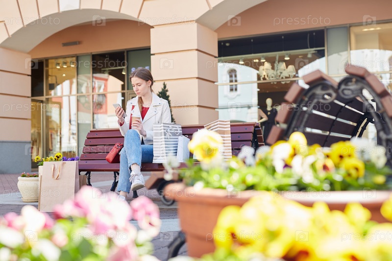 Женщина читает сообщение по телефону