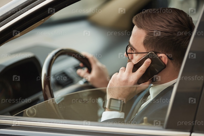Загруженный бизнесмен за рулем своей машины