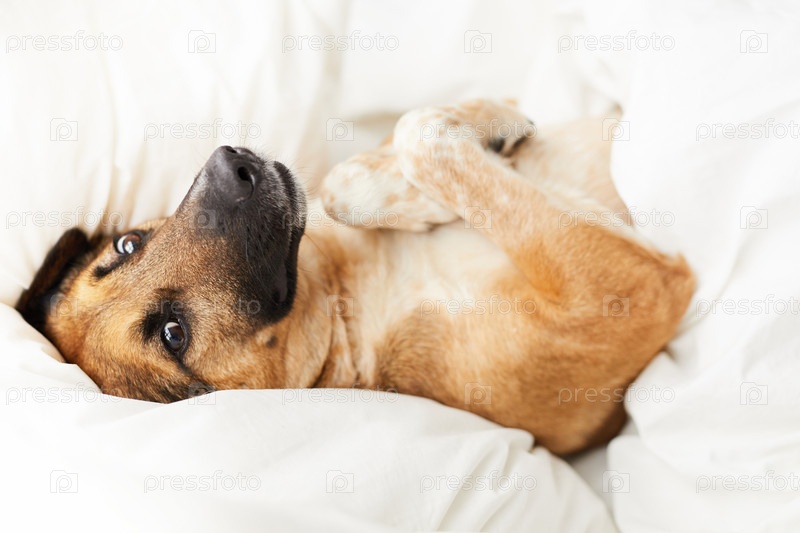 Собака, лежащая в удобной кровати