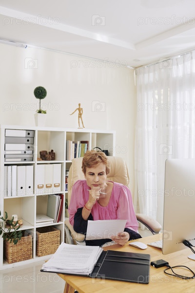 Финансовый менеджер читает отчет