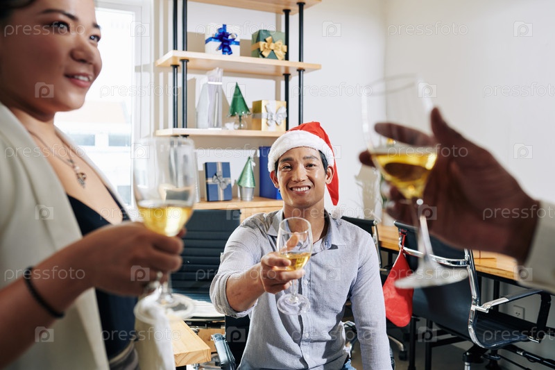 Бизнесмен празднует Новый год с коллегами