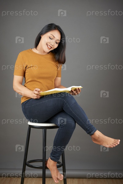 Женщина, сидящая на стуле с книгой