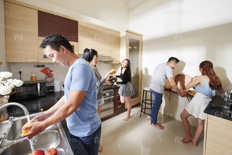 Люди готовят еду для домашней вечеринки