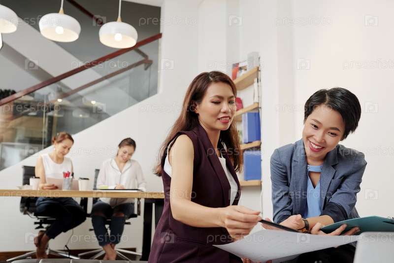 Бизнес-партнеры обсуждают контракт
