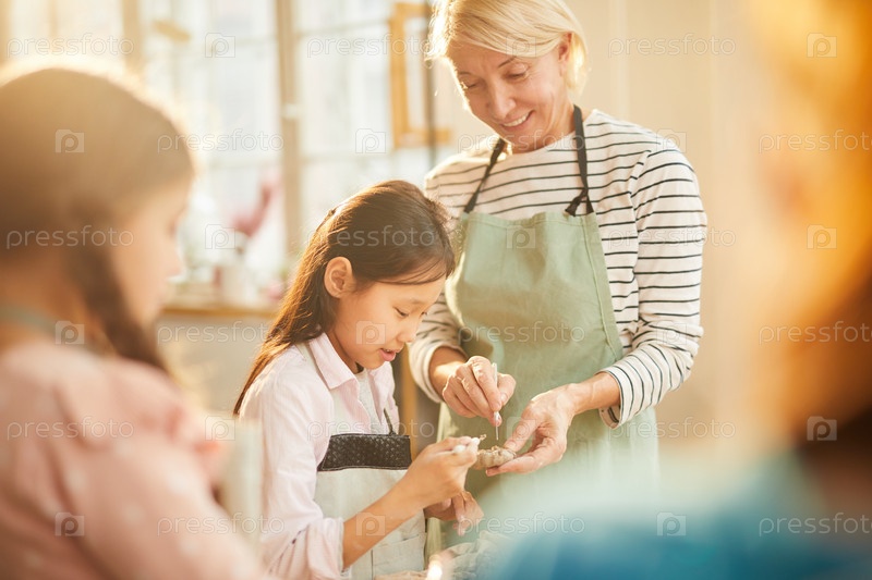 Девушка в керамической мастерской Азиатская