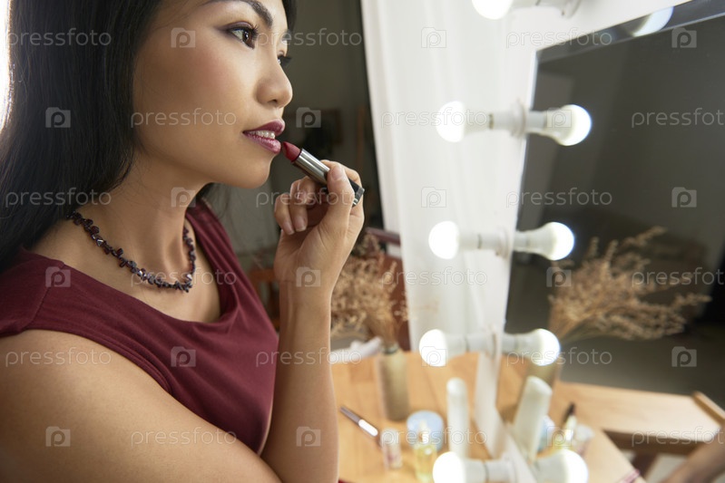 Женщина, наносящая помаду