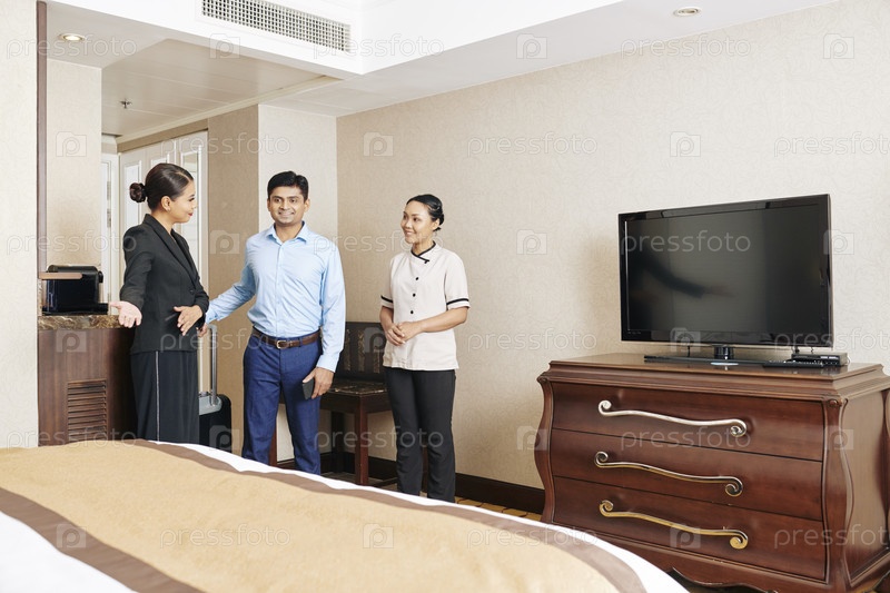 Сотрудники отеля встречают гостя