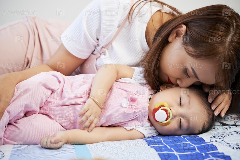 Матери целуют спящую дочь