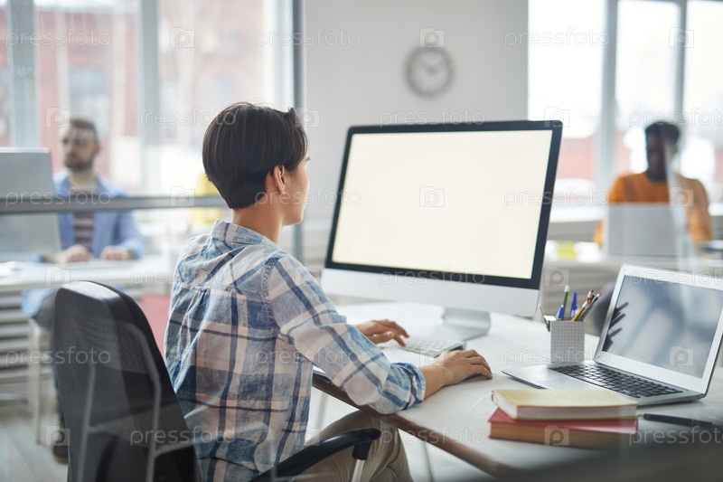 Работает перед монитором