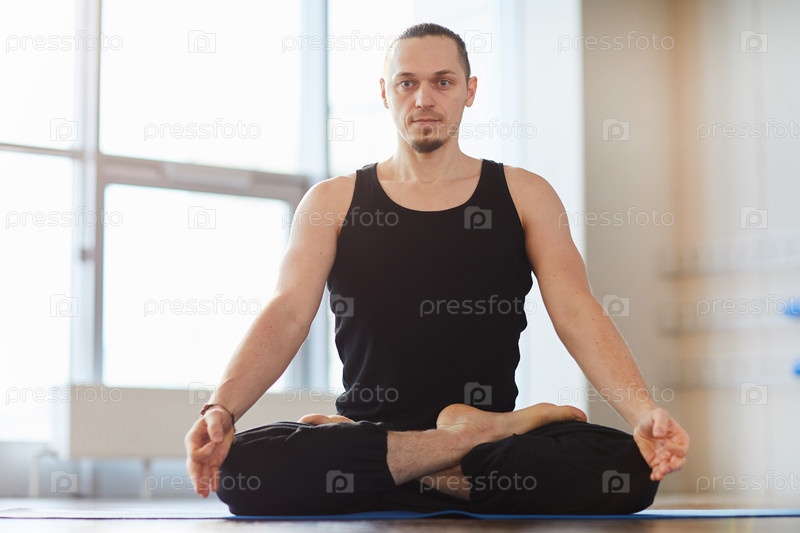 Молодой мускулистый мужчина медитирует один
