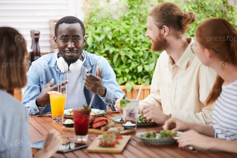 Друзья обедают в кафе