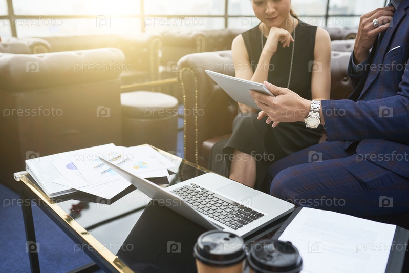 Бизнесмены, использующие беспроводные гаджеты на работе