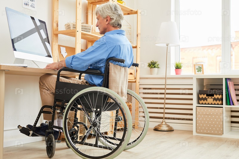 Инвалид использует компьютер дома