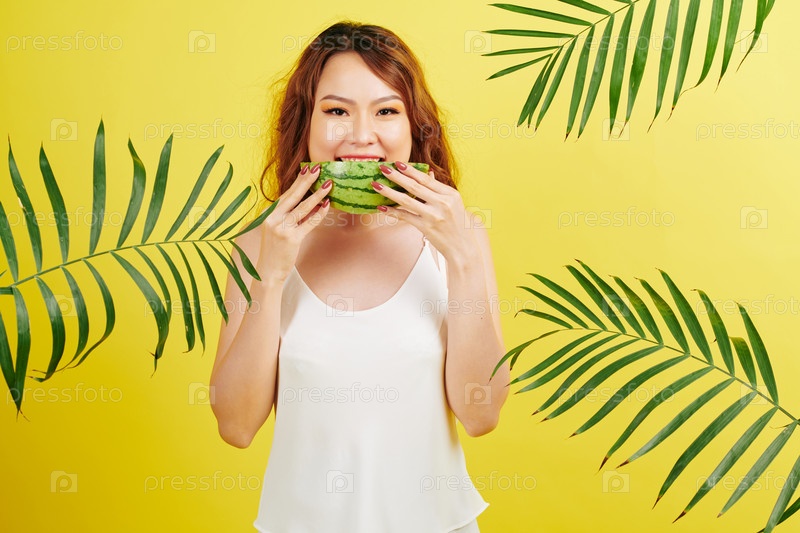 Женщина ест арбуз