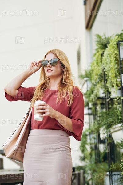 Деловая женщина, гуляющая с кофе на вынос