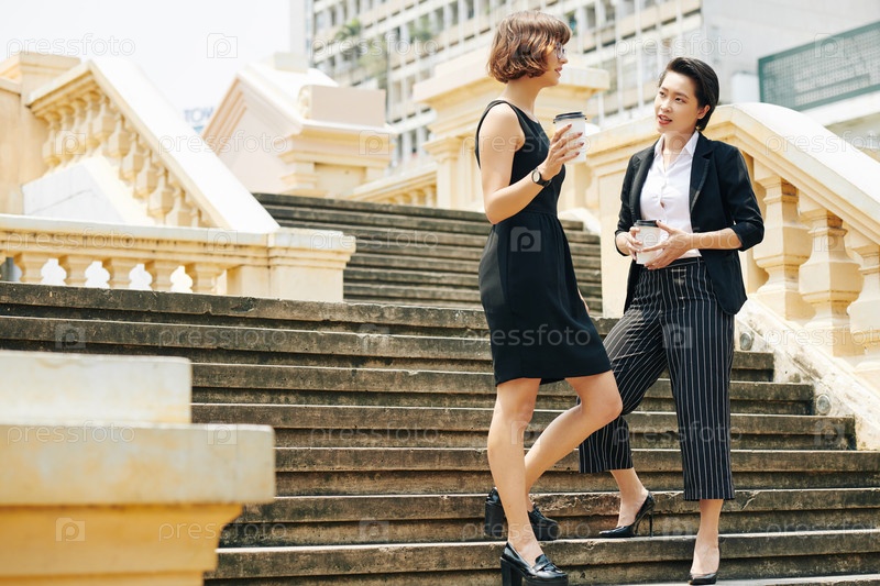 Деловые женщины, ведущие беседы на открытом воздухе