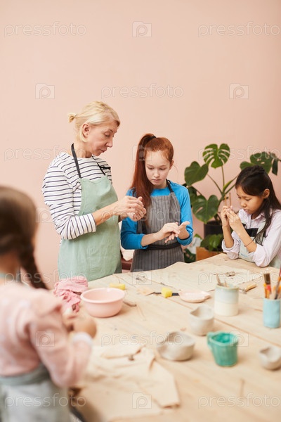 Группа детей в классе керамики