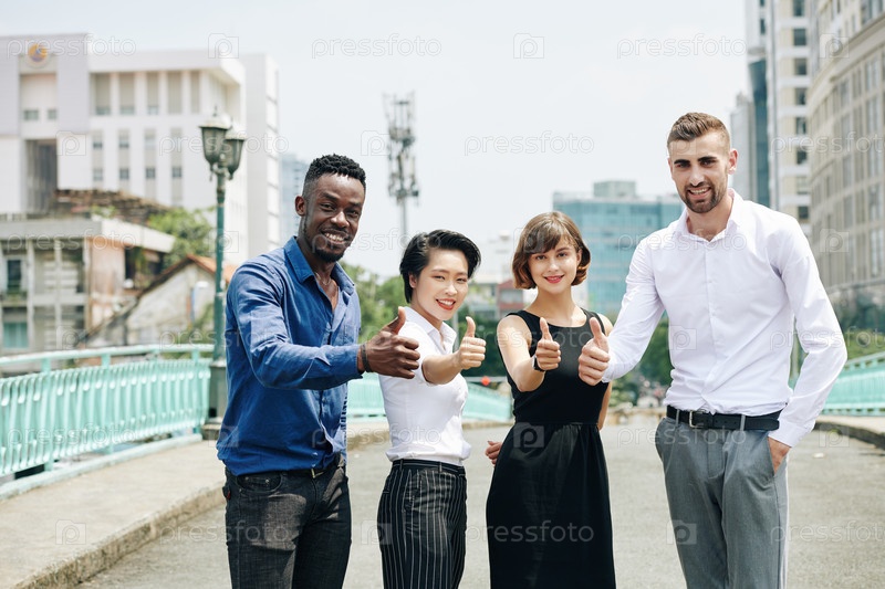 Успешные бизнесмены показывают большие пальцы