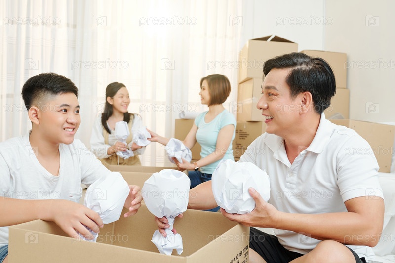 Отец и сын разворачивают вещи