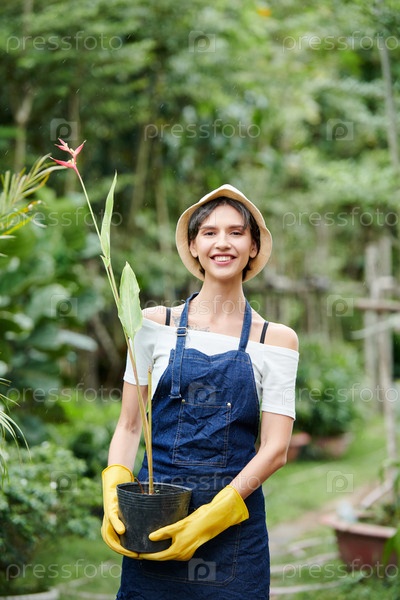 Садовник, несущий цветочный горшок