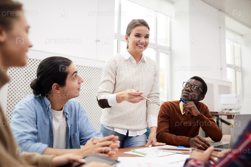 Группа студентов, обсуждающих проект