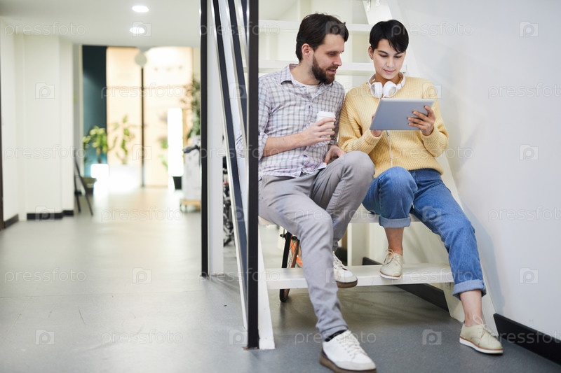 Современные коллеги анализируют онлайн-данные на планшете