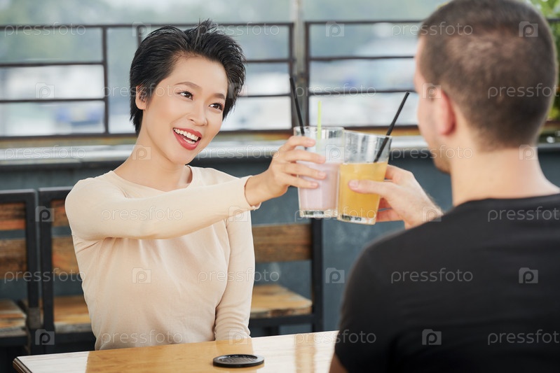 Пара празднует с коктейлями