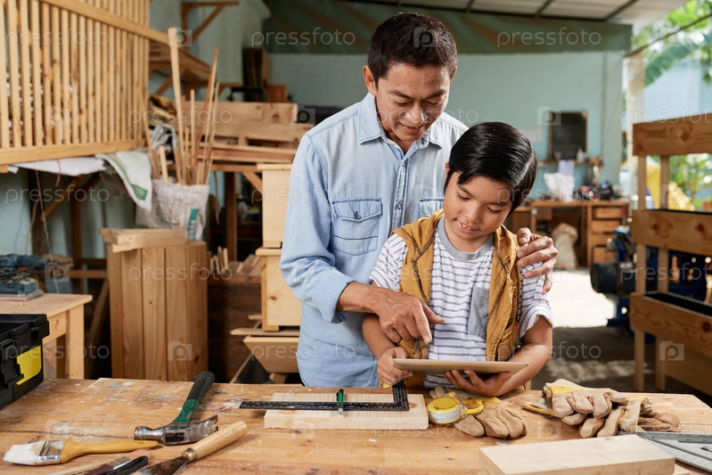 Отец и сын смотрят учебник