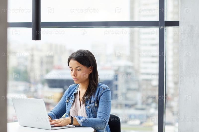 Деловая женщина печатает на ноутбуке в офисе