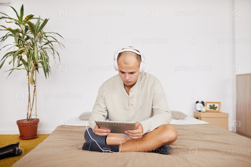 Мужчина с планшетным компьютером дома