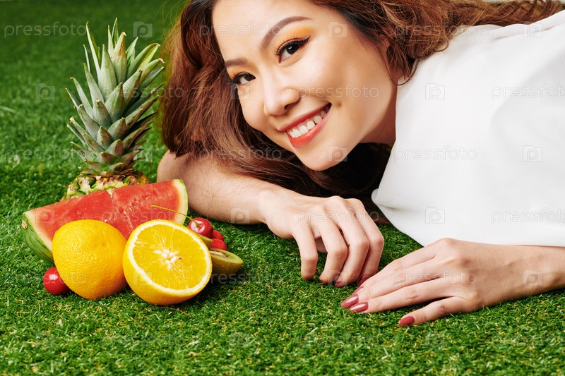Женщина ест свежие фрукты
