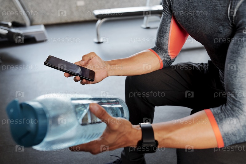 Спортсмен проверяет смартфон