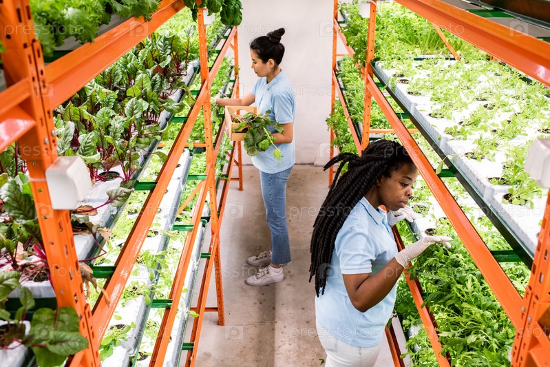 Две женщины-межкультурные тепличные работницы, которые делают отбор саженцев