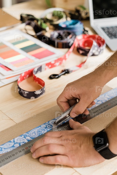 Руки ремесленника готовят декоративные рабочие части для ручных ошейников