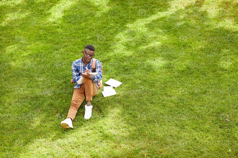 Студент, сидящий на африканской траве
