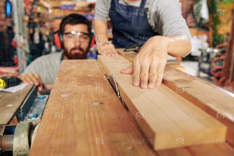 Плотники режут деревянную доску