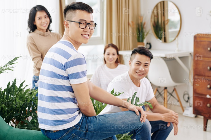 Молодой человек проводит время с друзьями