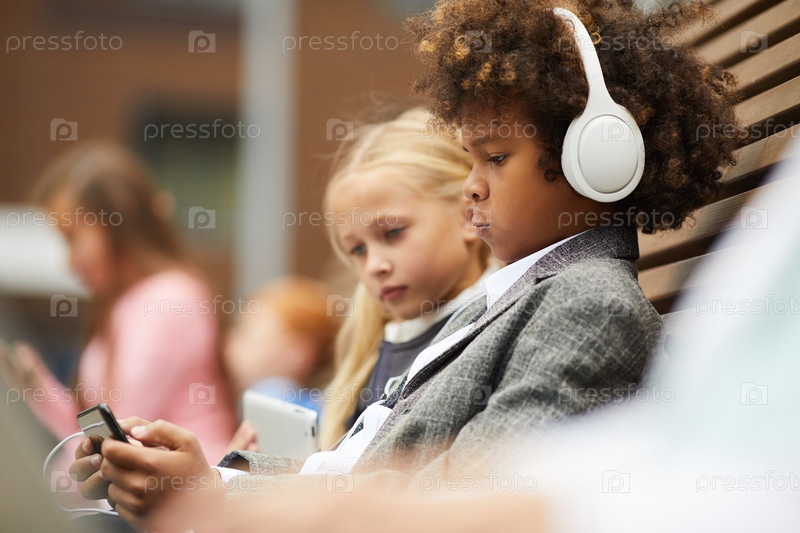 Африканский мальчик играет в игры по телефону