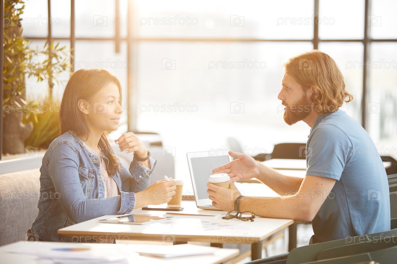 Бизнес-партнеры обсуждают в кафе