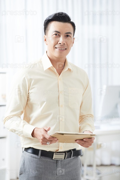Азиатский бизнесмен с цифровым планшетом в офисе