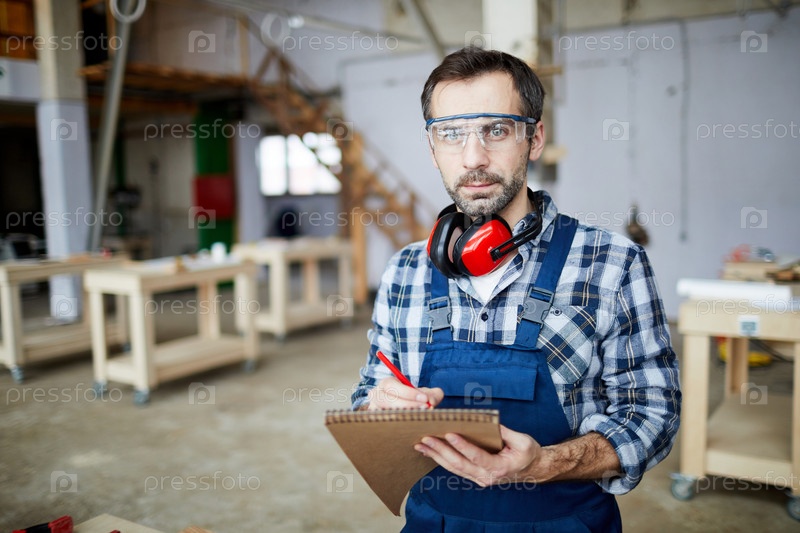 Брутальный плотник делает заметки в скетчпаде