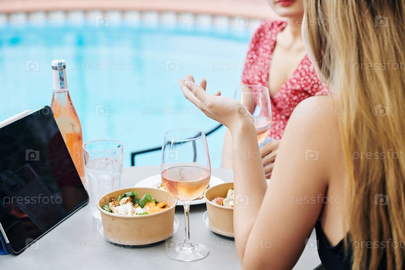 Друзья за столом в кафе сплетничают