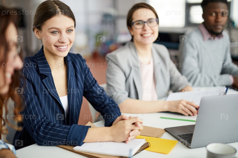 Молодая деловая женщина за столом встреч