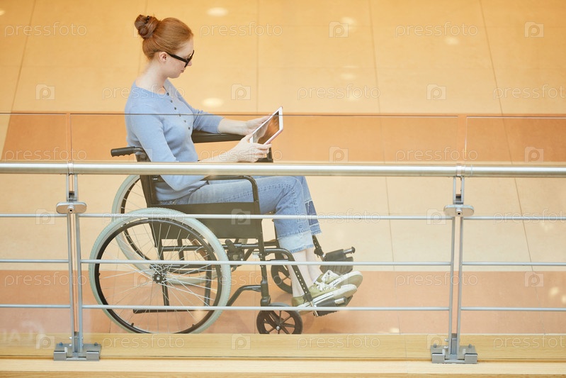 Инвалидная женщина, использующая планшетный компьютер
