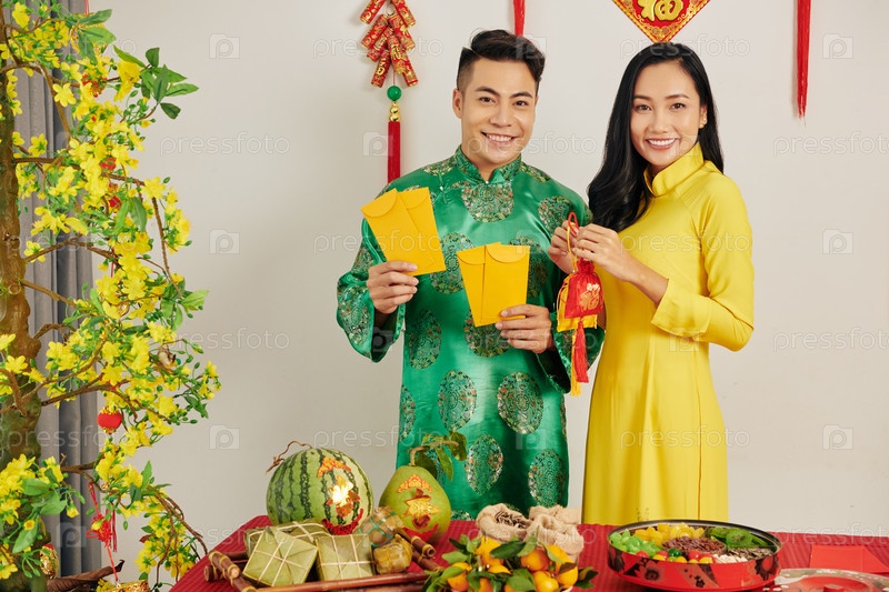 Пара, празднующая Тет дома
