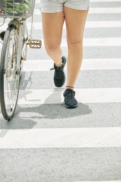 Женщина пересекает городскую дорогу