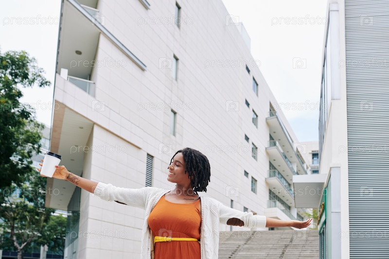 Счастливая африканская женщина в городе