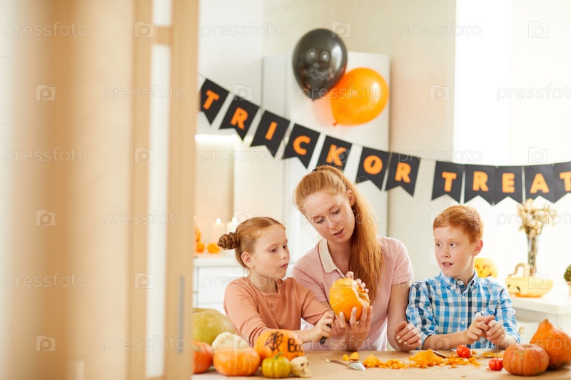 Мать с детьми готовится к Хэллоуину